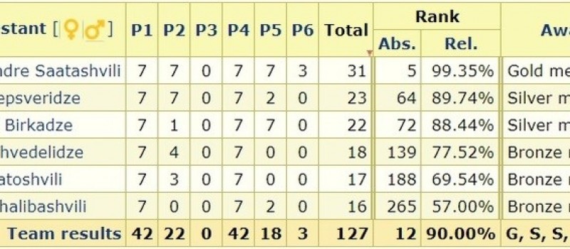 ინდივიდუალურ ჩათვლაში კომაროვის სკოლის მოსწავლე, ალექსანდრე საათაშვილმა მე-5 ადგილი დაიკავა და საქართველოს ისტორიაში რიგით მესამე ოქროს მედალი მოუტანა. ალექსანდრე ოლიმპიადის გამარჯვებულთა ხუთეულში 99,35 პროცენტით მოხვდა. საათაშვილის მიერ მეხუთე ადგილის დაკავებამდე, საქართველოს ინდივიდუალურ დონეზე მე-12 ადგილი ეკავა. კომაროვის სკოლის ორმა მოსწავლემ, საბა ლეფსვერიძემ და ნიკოლოზ ბირკაძემ ვერცხლის მედლები მოიპოვეს. ასევე კომაროველმა, დავით ხვედელიძემ კი ბრინჯაოს მედალი.